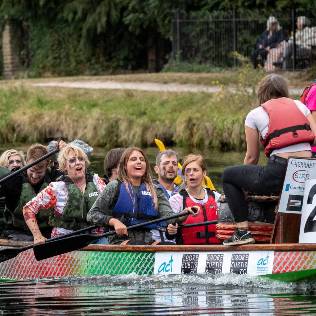 There are plenty of ways to fundraise before and on the day, such as seeking sponsorship per person/per crew, boat logo advertisements, raffle draws, even on the day with bucket donations… the supporters go as far as swimming in paddling pools full of jelly on a hot day! It is all about unique ideas!